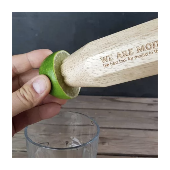 L’outil We Are Mojito est composé à lui seul d’un doseur à rhum et sucre de canne, d’un marteau à glace pilée, d’un pilon et d’un presse agrumes. Pressez le citron, écrasez la menthe, versez votre sirop et votre rhum parfaitement dosés, pilez vos glaçons et ajoutez un peu d’eau gazeuse. Le tour est joué !