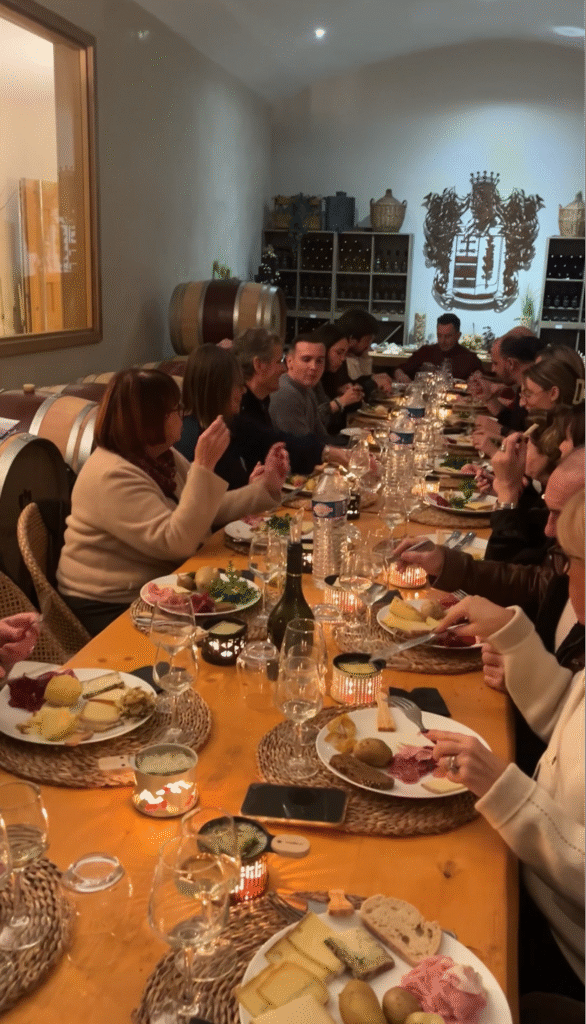 Rendez-vous au Château Vaudois pour une dégustation de vins avec le maître de chai, autour des cuves. La soirée s’est ensuite poursuivie avec une magnifique raclette à la bougie, accompagnée des délicieux fromages de la fromagerie de Lorgue.