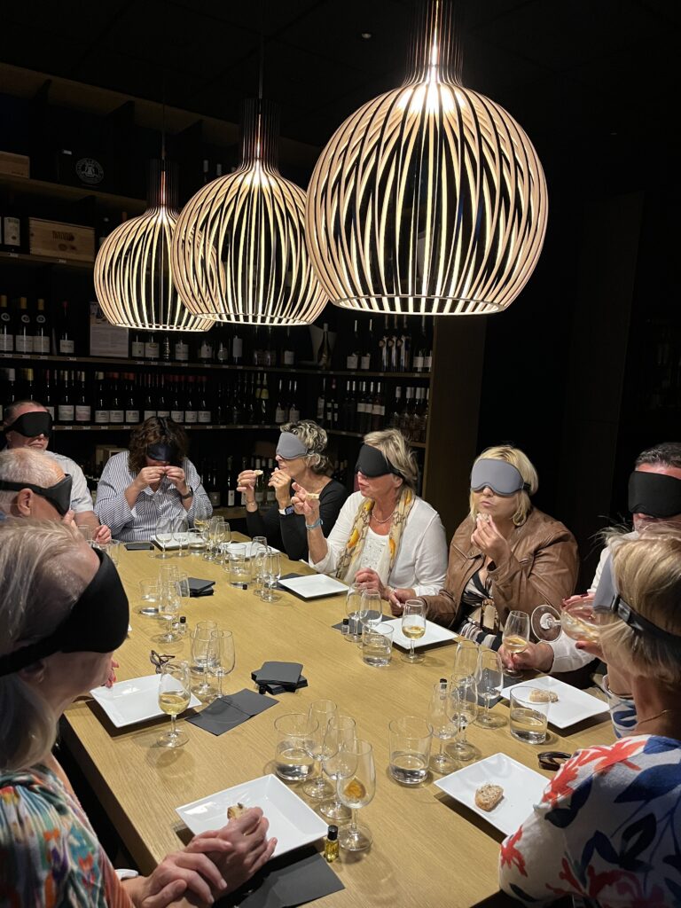 Une soirée hors du commun : déguster dans le noir complet. Privés de la vue, nos convives ont redécouvert leurs sens, l’odorat, le goût, le toucher dans une expérience multisensorielle unique. Les saveurs se sont révélées différemment, plus intenses, plus surprenantes. Un moment de connexion totale avec le goût, où chaque bouchée devenait une énigme à résoudre.